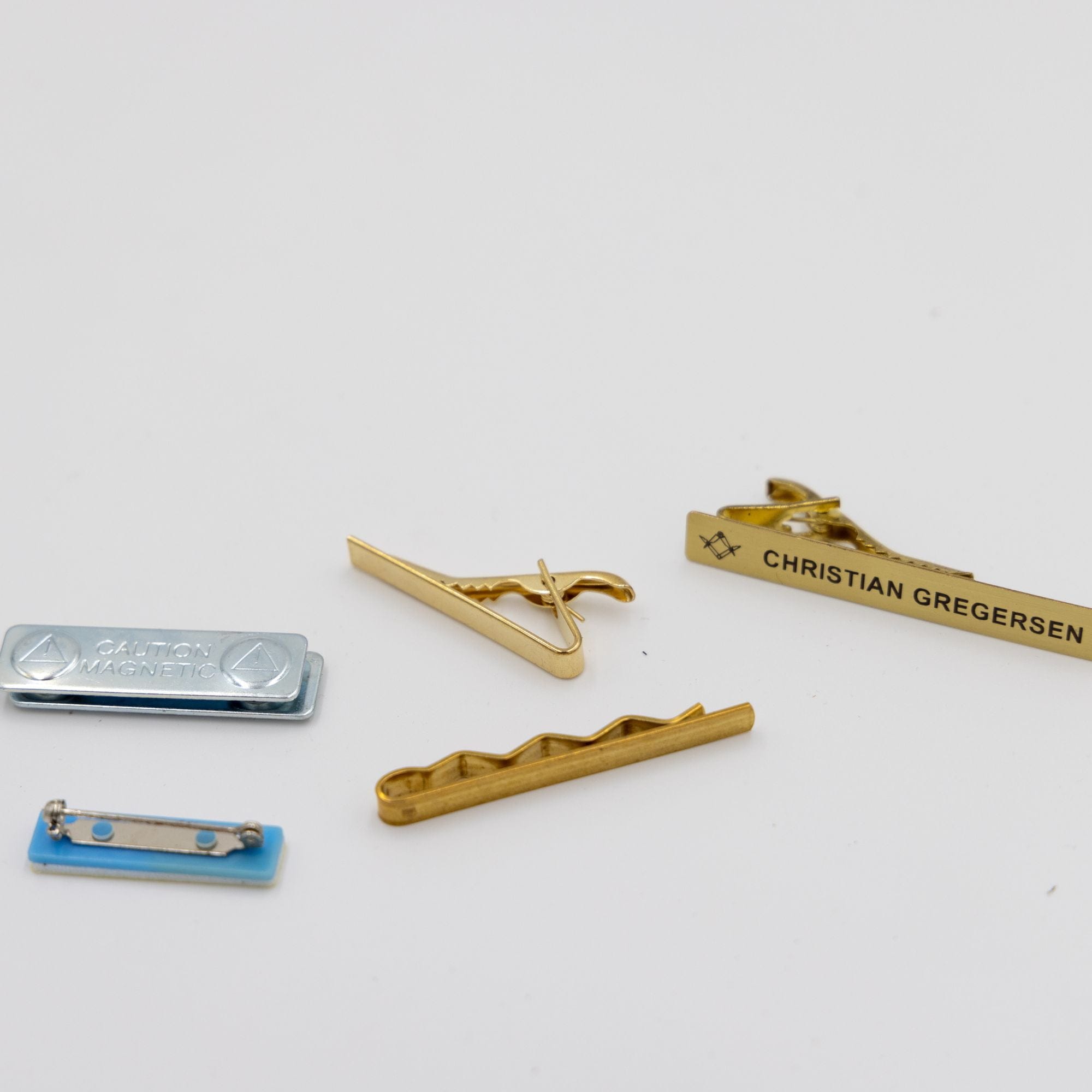 De leveres med nål, magnet, næb eller slipsenål