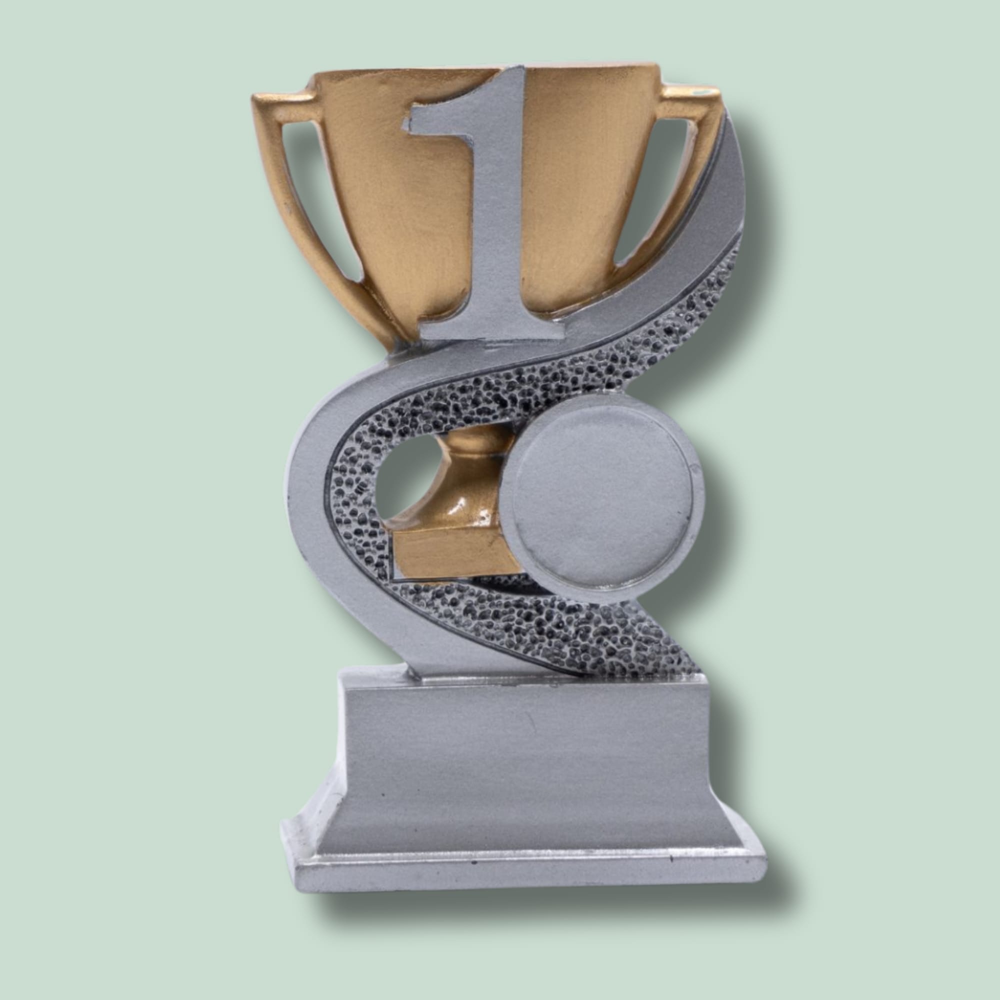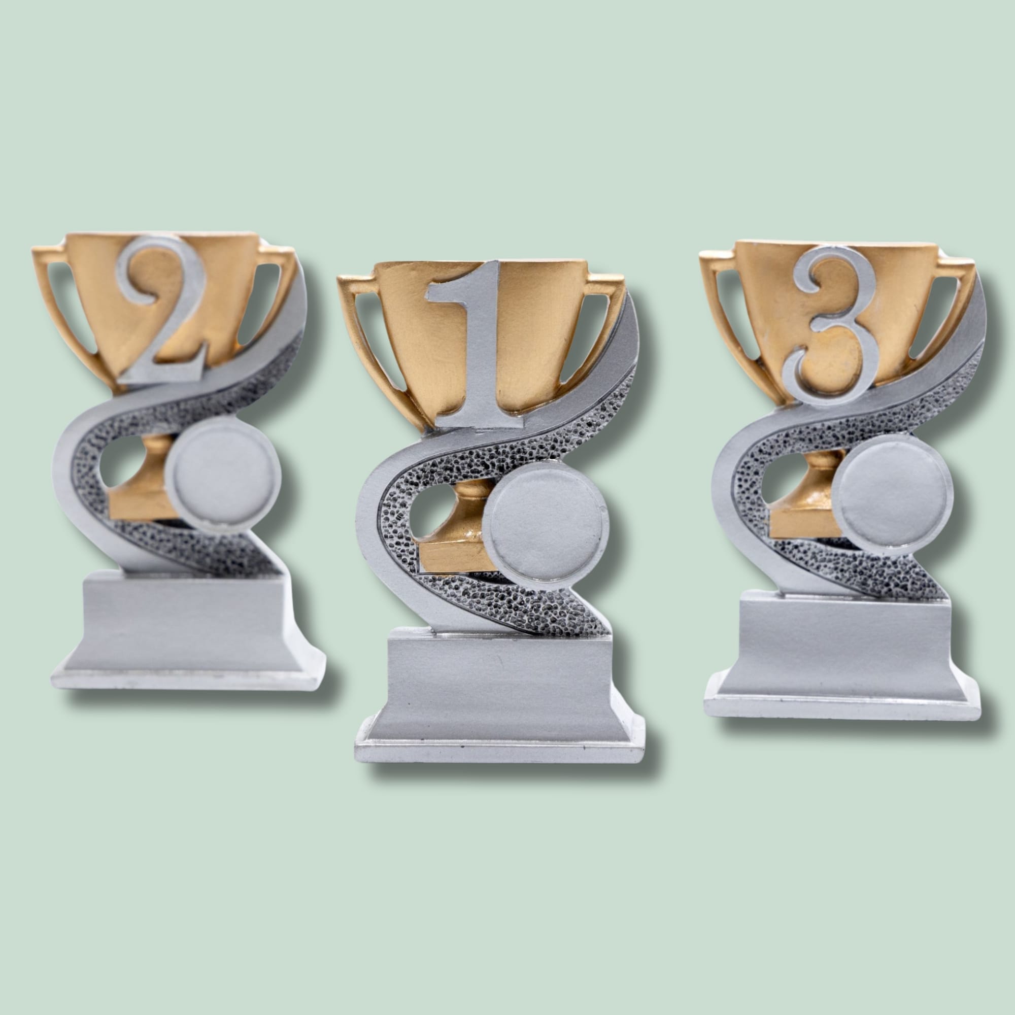 Sjov lille statuette med en guldpokal indsat sammen med 1-2 eller 3 tal