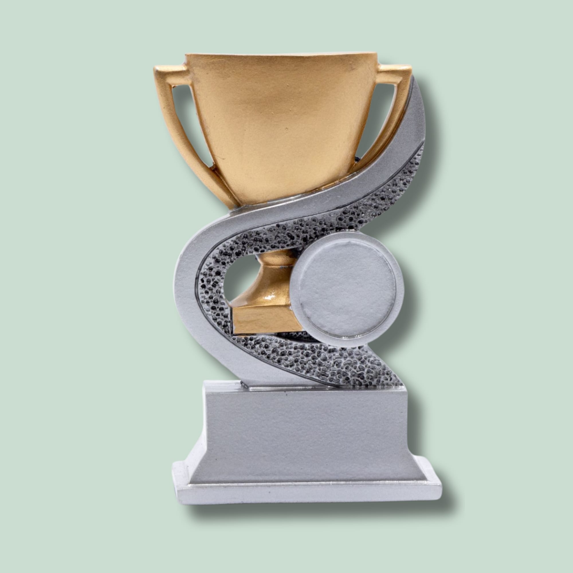 Flot statuettemed guldpokal, der kan bruges til en hver lejlighed